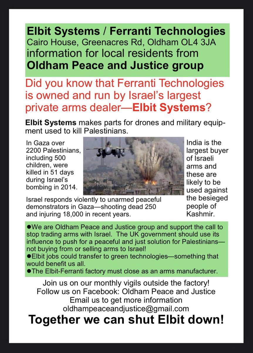 @OLDpeacejustice Oldham Peace and Justice petition calling for#Elbit out of#Oldham Image of flyer attached, aimed at local Oldham residents unaware of the@ElbitSystemsLtd site#StopArmingIsrael#ElbitOutOfOldham https://community.sumofus.org/petition/4109c080-6e17-41c6-827f-ae31c98b0f5b/?locale=en?source=ml …pic.twitter.com/iD55DJe3bL