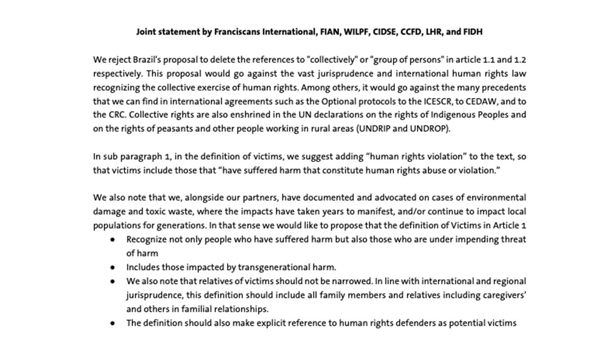 #UN#BindingTreaty to#StopCorporateAbuse: The definition of victim in Article 1 should include “latent, enduring, or trans-generational harm", acknowledging the long-term and widespread damage of many human rights violations that occur in the context of business activities pic.twitter.com/iaY2trgMgj
