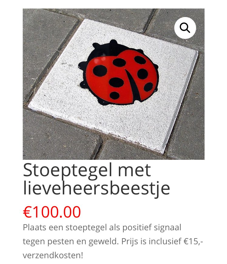 Pestkop: pest iemand Ik: koop een stoeptegel met lieveheersbeestje voor €100,- inclusief verzendkosten Pestkop: sorry het spijt me heel erg
