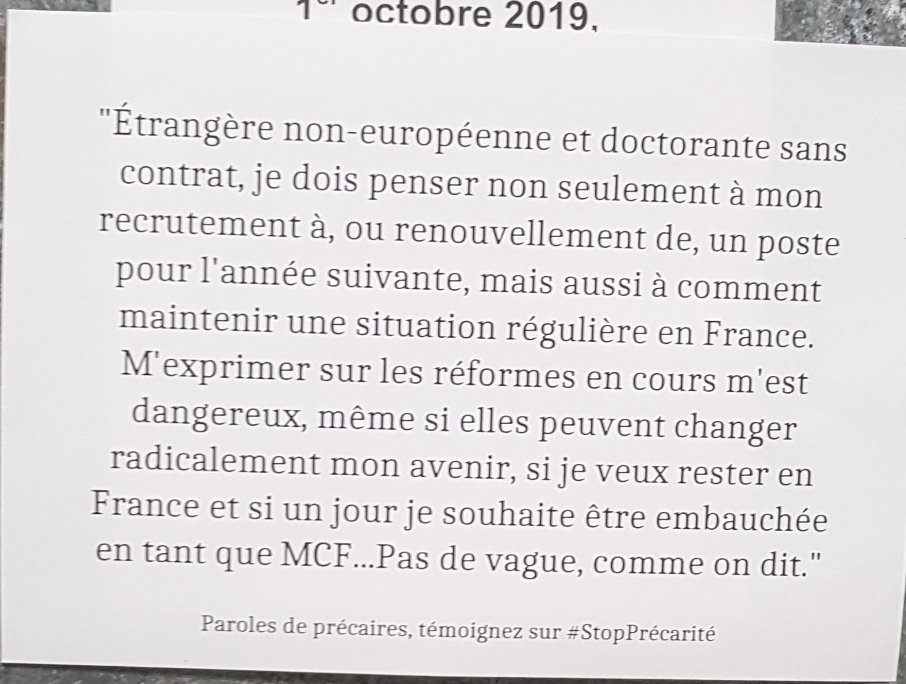 #StopPrécarité Bravo à toutes celles-ceux qui visibilisent actuellement les conditions d'emploi précaires à l'université pic.twitter.com/XK39X7t0Ku