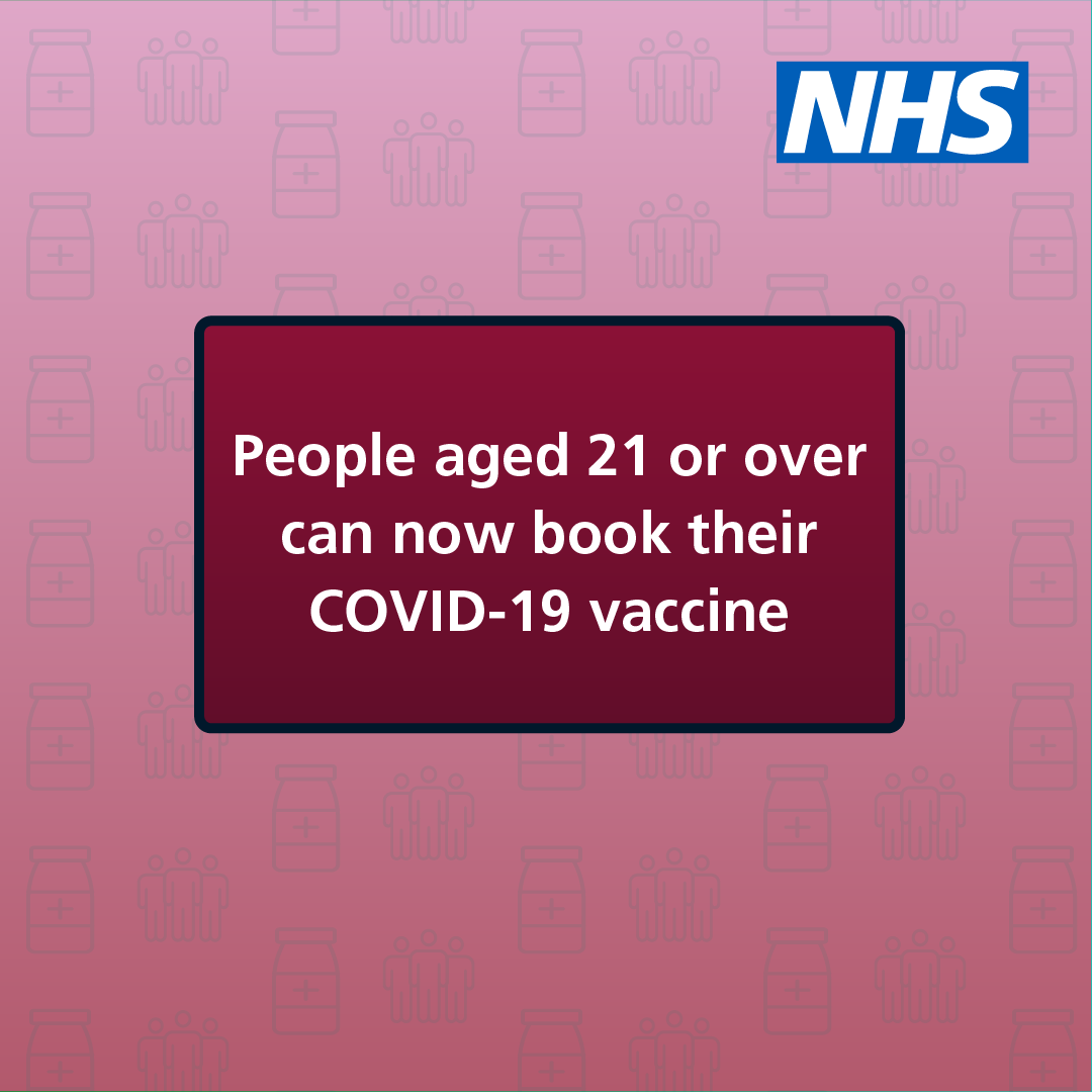 or over, or if you turn 21 before 1 July 2021, you can now book your #Covid vaccine