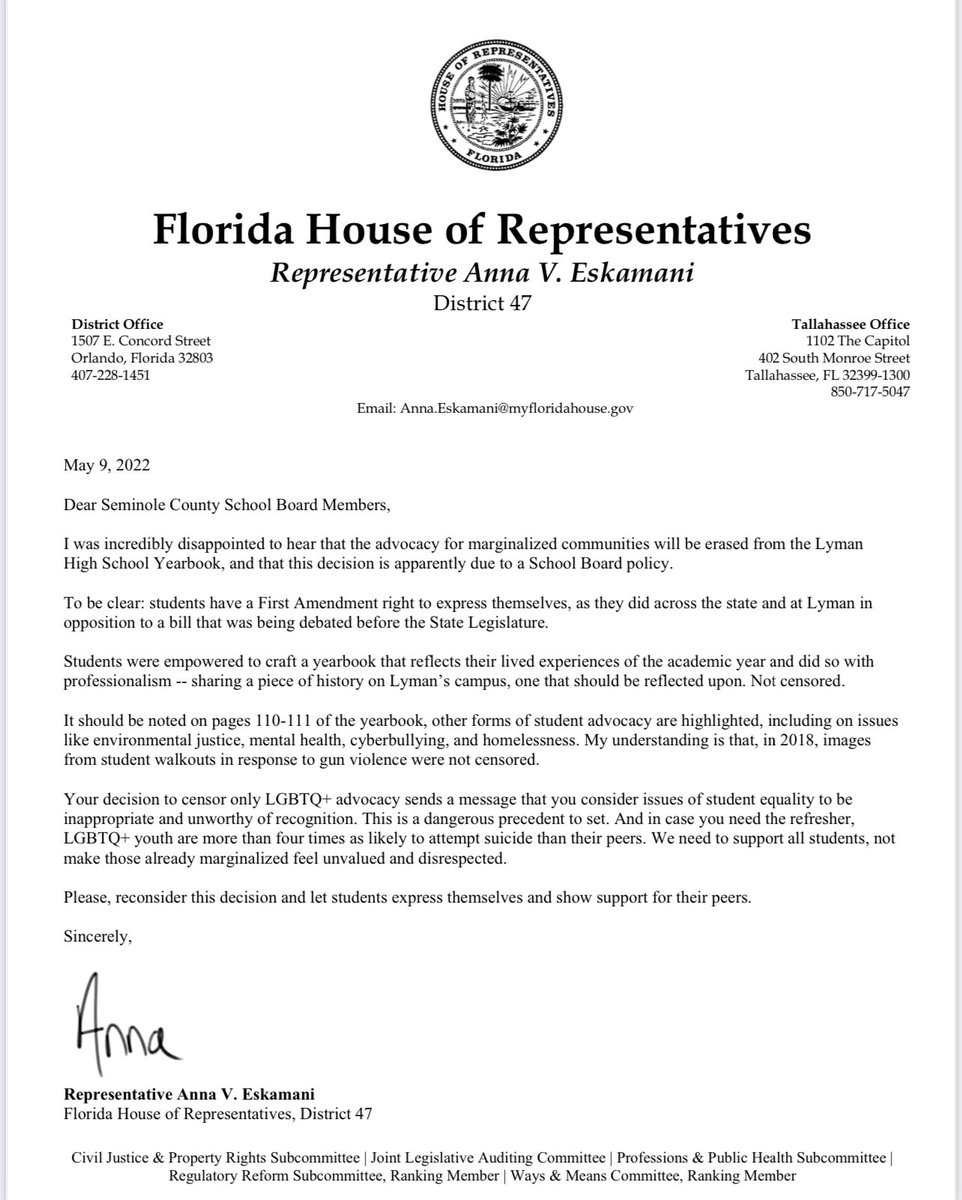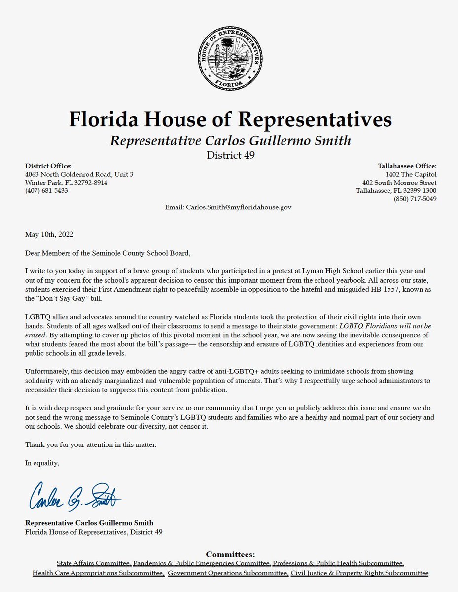 #STOPtheSTICKERS petition/spoke out at a Tues meeting of the Seminole School Board to oppose the censorship” https://www.lgbtqnation.com/2022/05/school-covers-yearbook-story-student-protest-dont-say-gay-law-stickers/ … -