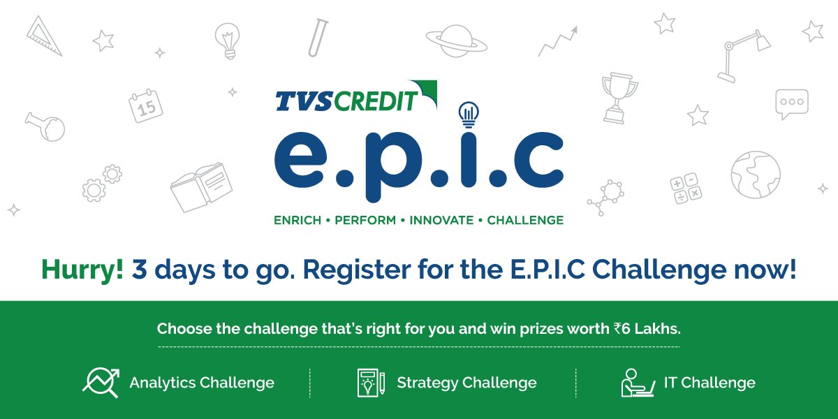 It is the time for action if you haven’t registered yet for the TVS Credit E.P.I.C Challenge. To register, visit: https://epic.tvscredit.com/ .