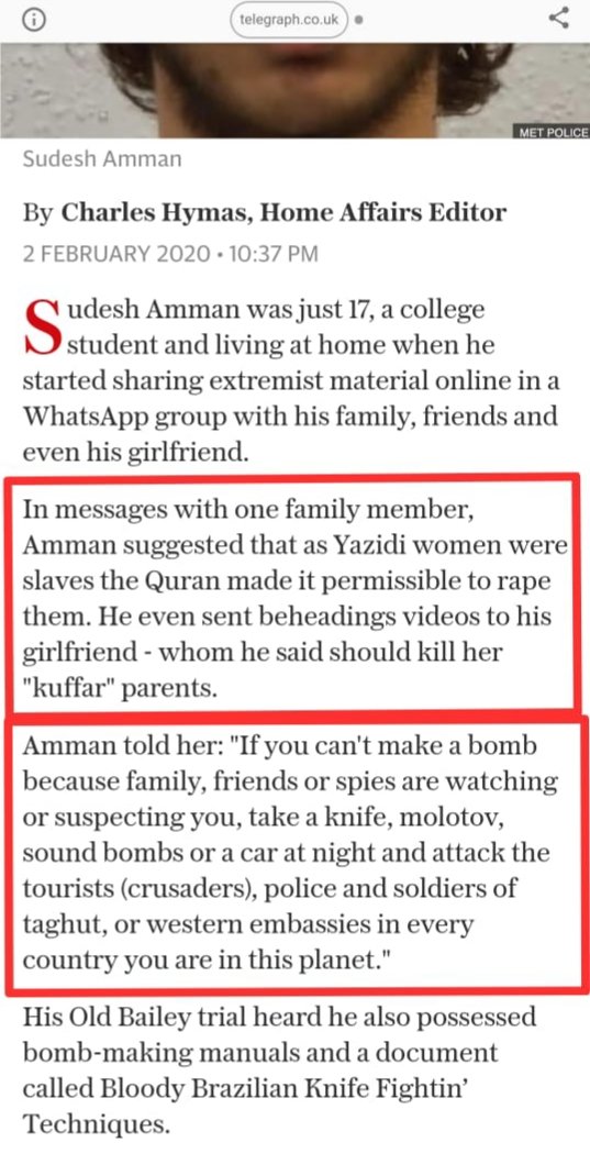 #SudeshAmman, the terrorist who attacked in London today He clearly was just 1 of many ISIS symphatizers in his family "The WhatsApp group included images of his younger siblings in poses used by IS supporters & wielding weaponry" https://www.bbc.com/news/uk-51351885 … -