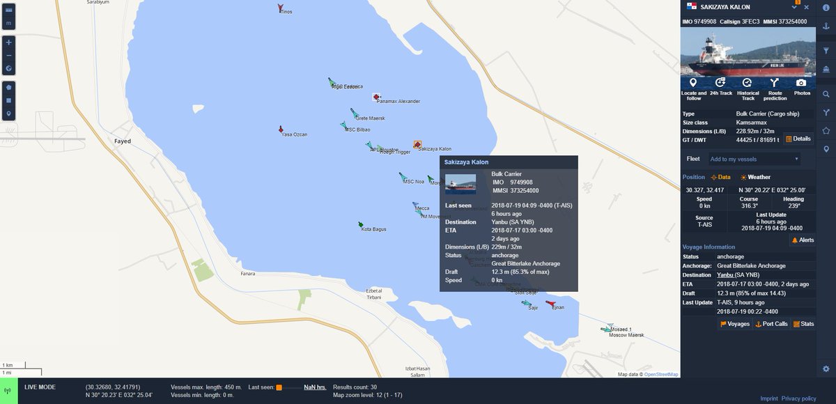 #SuezCanal Authorities arrested the "Panamax Alexander," "Aeneas,""Sakizaya Kalon," & "Osios David"#ships on July 17, following the mass#collision in the canal on July 15. Learn more: http://bit.ly/2uwQ7zM pic.twitter.com/VTLiaRrQj6