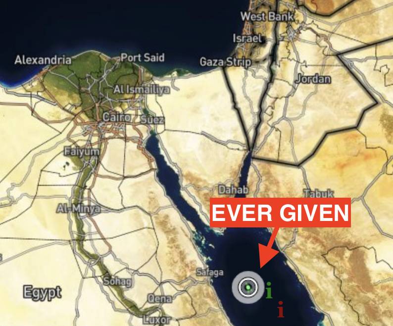 #EverGiven is having a bit of a ride as she steams towards the#SuezCanal. There's a proper blow going on, and she's registering 30kts of wind right now (34mph). Hopefully her Suez transit isn't too windy. You know. Like last time. pic.twitter.com/NzDctuqi0o