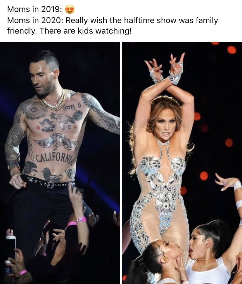 because it was "InAPprOpRiaTe" for their crotch goblins instead of celebrating in the fact someome is representing them this beautifully. Both #SuperBowlHalftimeShow2020 performers are over 40 & moms! How fucking cool! -