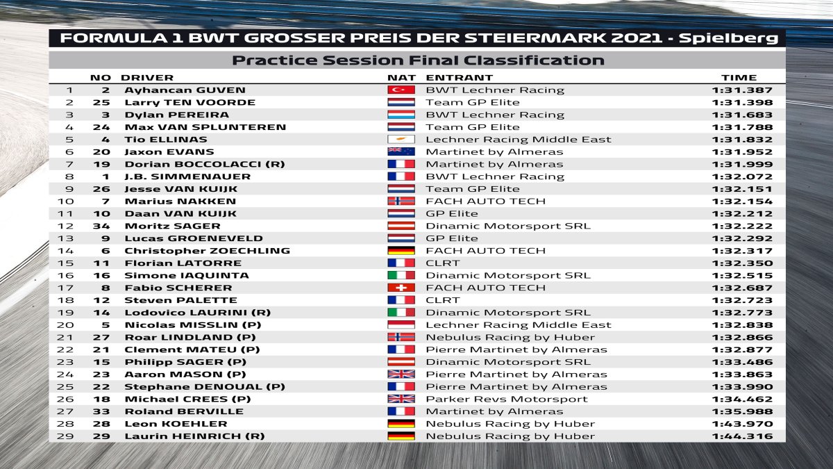 #PorscheMobil1Supercup – And that’s the provisional result of Qualifying for#Porsche#Supercup round 2 supporting@F1#styriangp at#redbullring. But race control already warned that track limits violations will be checked#911GT3Cup@PorscheRaces#PorscheCustomerRacingpic.twitter.com/9o5RunWCNU