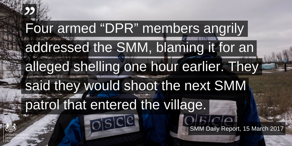 #SMM patrol threatened at gunpoint by Russian-backed separatists in Luhansk. Security of SMM must be respected.#supportSMM