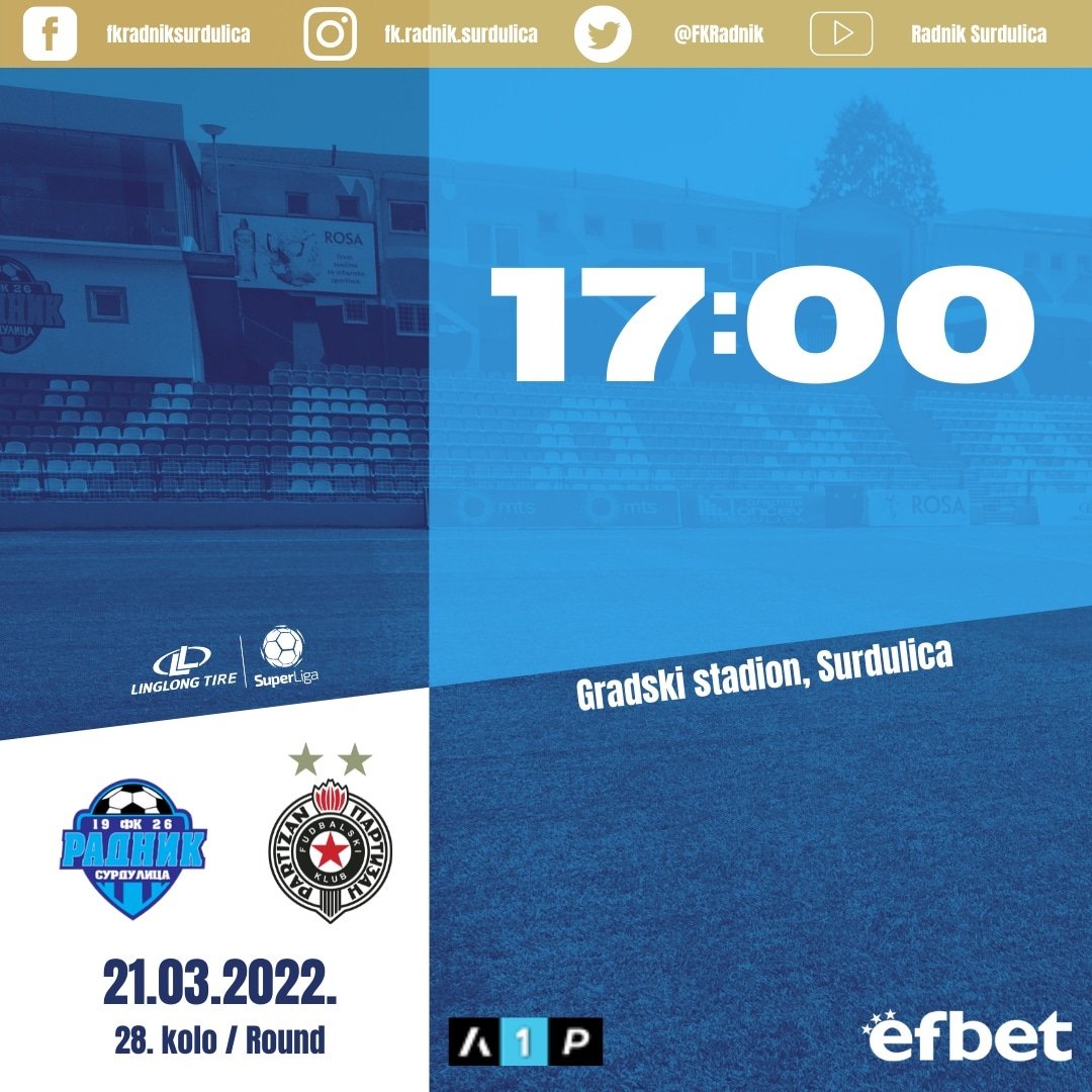 #radnikpartizan koji se igra 21.3. u#Surdulica u okviru 28. kola#LinglongTireSuperligaSrbije