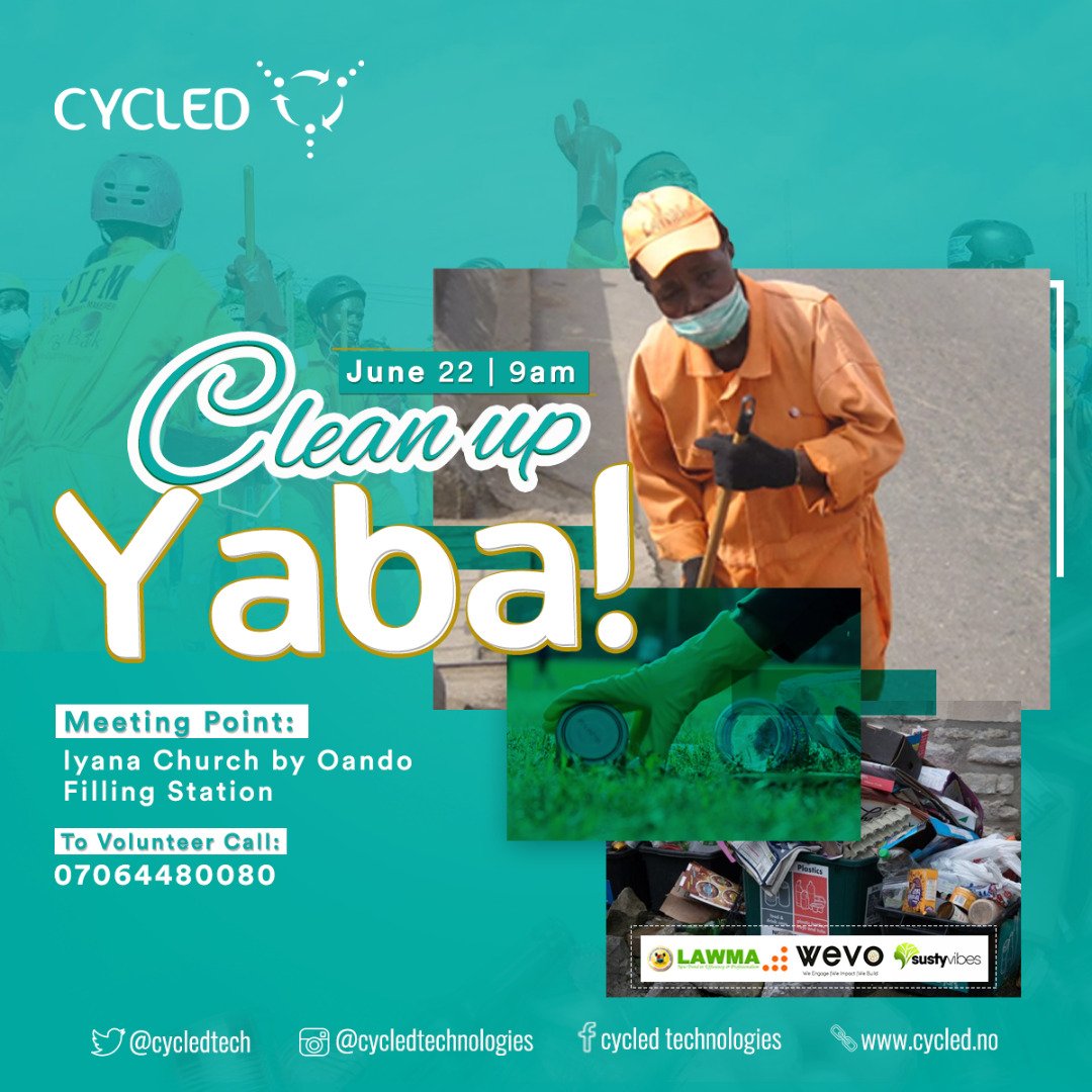#ForAGreaterLagos .@SustyVibes .@cycledtech call on you to join us tomorrow for the#CleanUp Yaba activity. This is an opportunity for you to contribute towards making the World a better place.#SustyEvents#ClimateAction#FridayMotivationpic.twitter.com/ZRPyFHFEyD