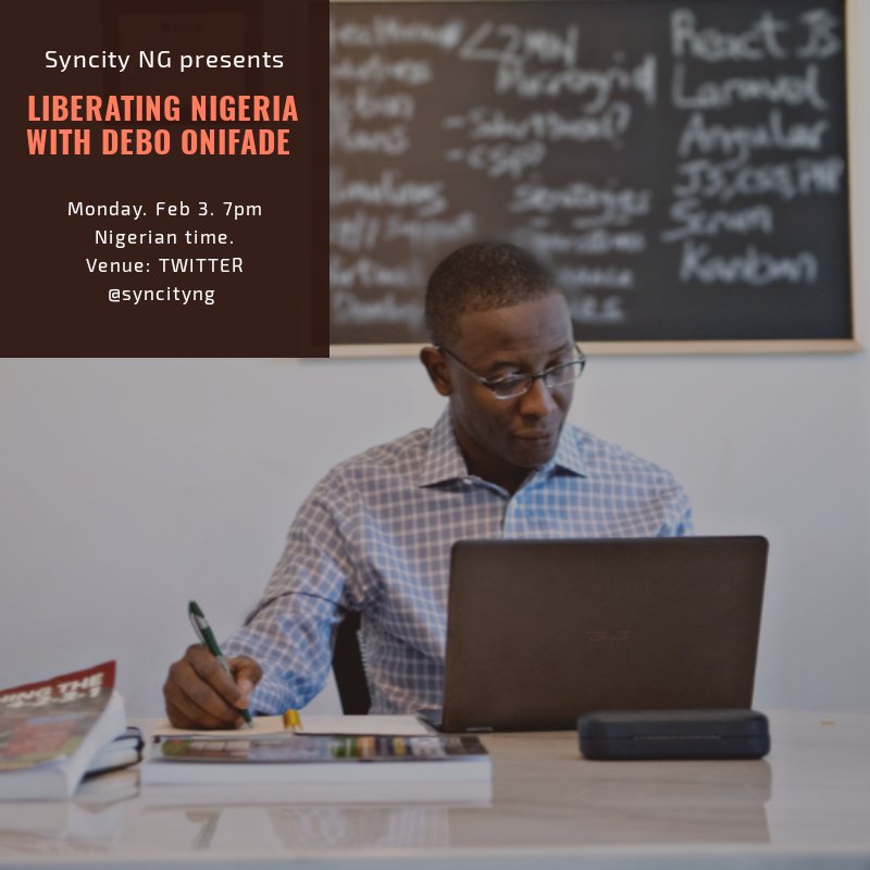 @deboonifade and I, do join the conversation by retweeting. Keep your questions handy. We will make the floor open later in the show. Debo is a political writer who believes the youth can take back and liberate Nigeria. His book is for sale.#SyncityNGLLL pic.twitter.com/ajKG7iEkKN