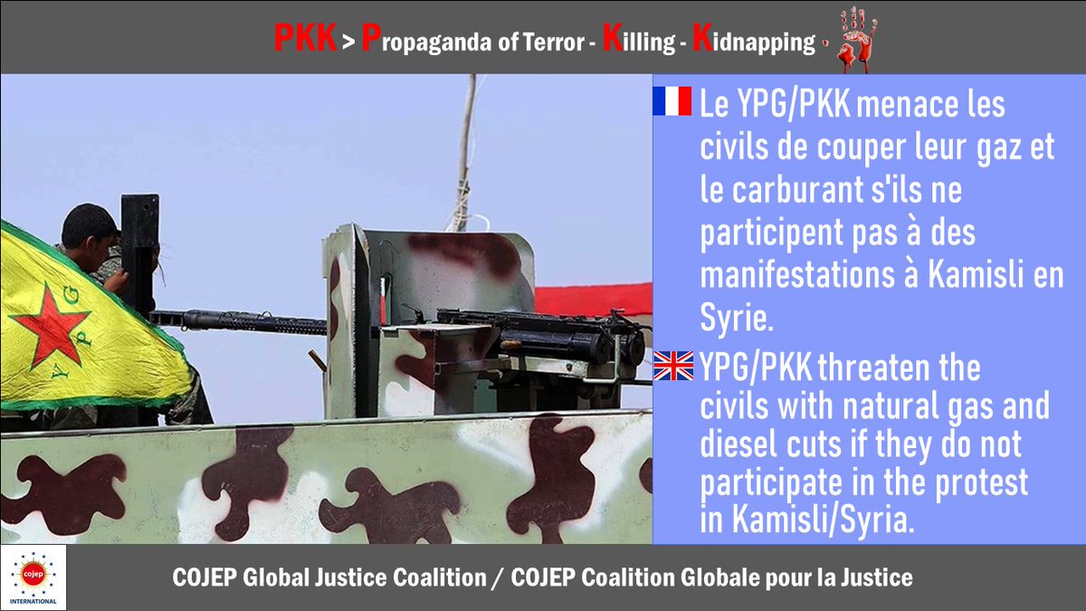 Le #YPG/#PKK menace les civils de couper leur gaz et le carburant s'ils ne participent pas à des manifestations à Kamisli en#Syrie.