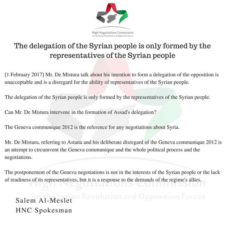 #Syrian Opposition statement to De Mistura (He said he will choose representatives if they does not come as a unified group to#peacetalks)pic.twitter.com/iGwsO4WAoz
