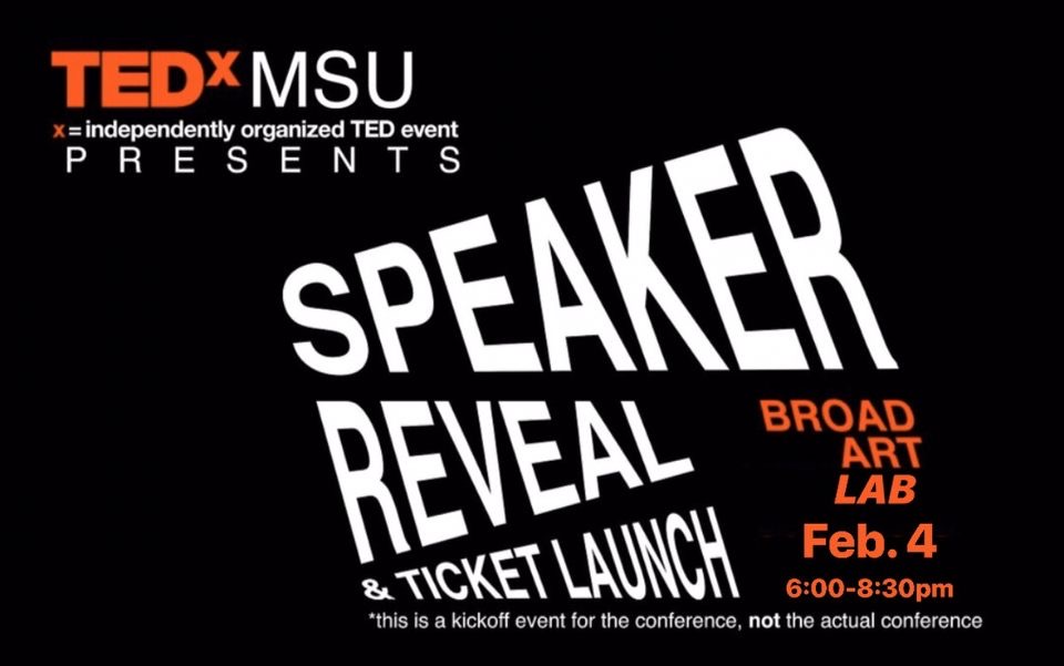Tomorrow is our SPEAKERS MEET AND GREET!!! Come meet the speakers for our 2020 TEDx CONFERENCE in March!!! The event is at the broad art LAB on grand river from 6 - 8:30 pm!! Please come out to support our kickoff event for the conference!!