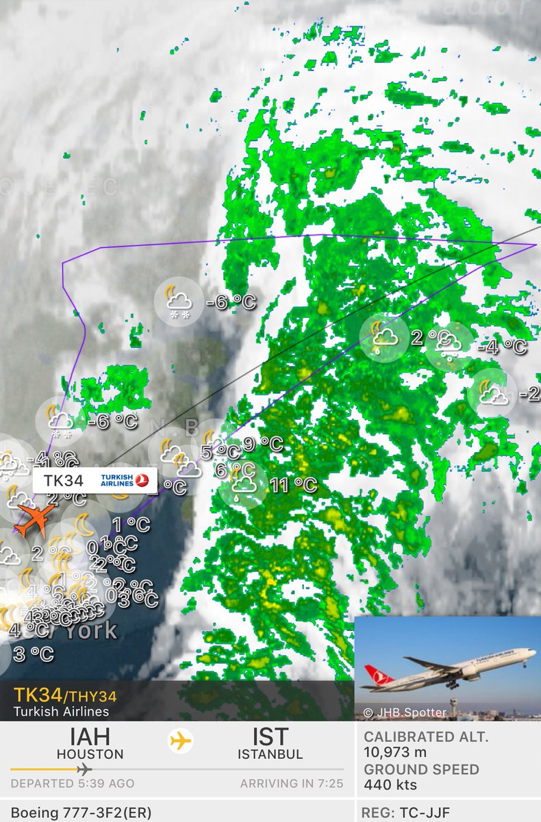 @TurkishAirlines late night service from Houston George Bush Intercontinental@iah to Istanbul Atatürk#TK34@BoeingAirplanes B777-3F2(ER) either maneuvers around the nasty Atlantic Canada winter storm or possibly diverted for another reason ?pic.twitter.com/aydeXqG8vf