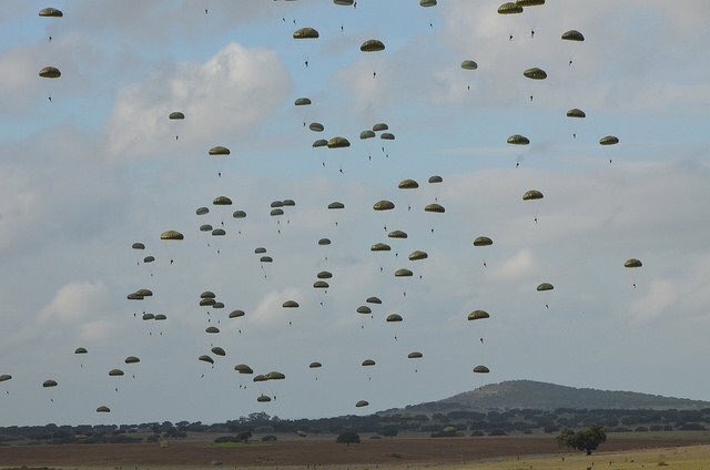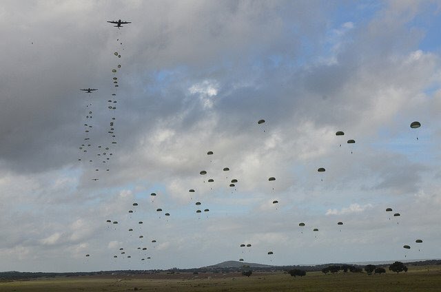 Está lloviendo? Si pero paracaidistas desplegando en Ejercicio
