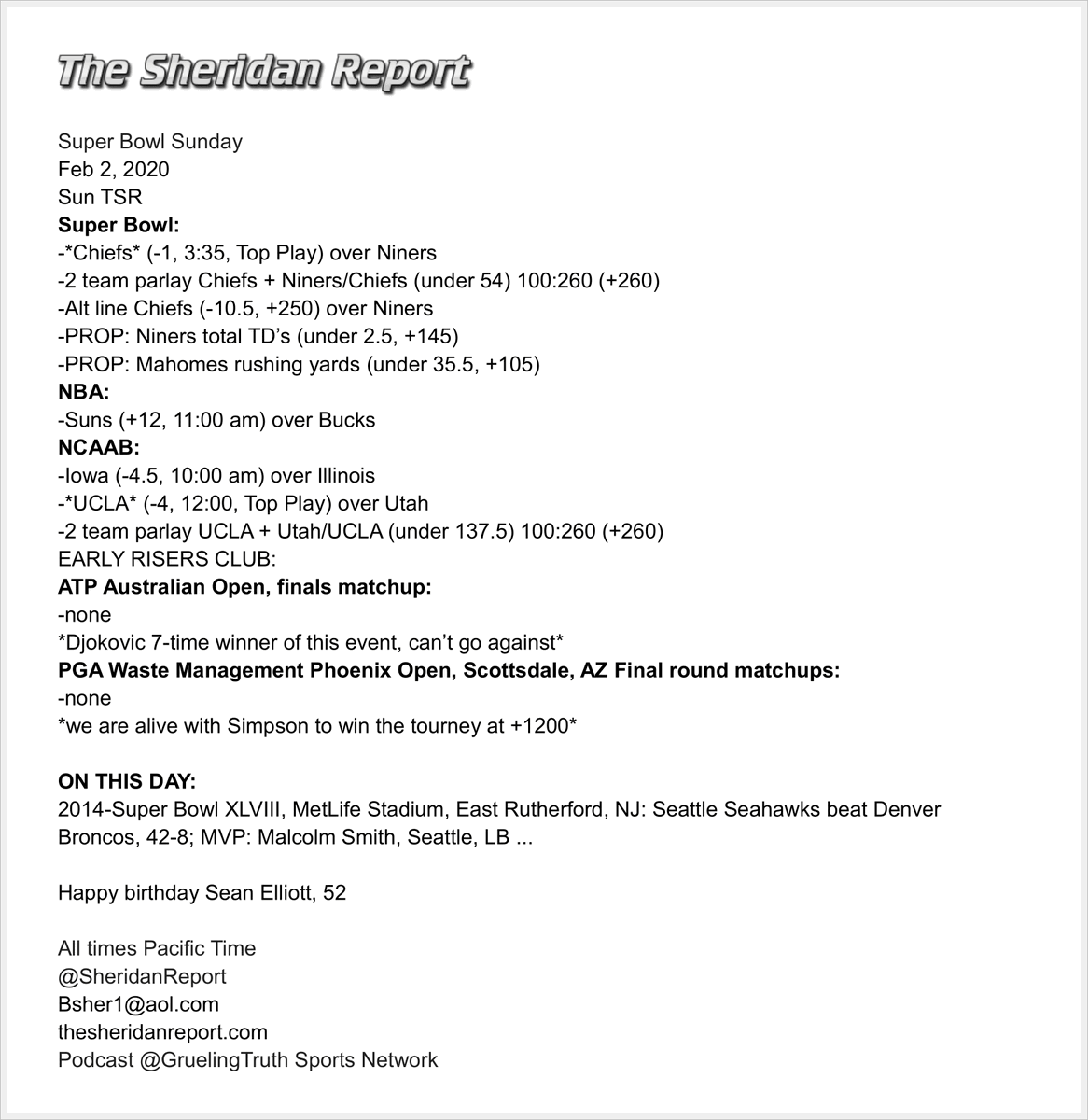 #TSR friends/subscribers! I’m getting so many text + DM, today was a MONSTER Day on the single biggest sports day of the year! It’s my pleasure to help guide + be a resource for your sports wagering! We CRUSHED the bookies today!!!#SuperBowl#SuperBowl2020pic.twitter.com/ZfqL2mQRy3 -