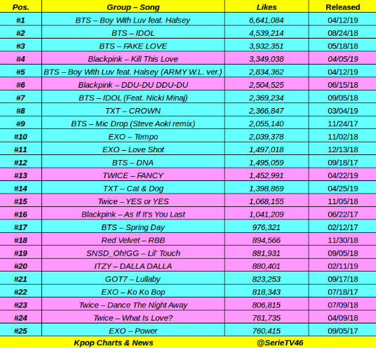 #TXT and#EVERGLOW are the 2019 rookies with most 1 million likes on YouTube. (Music Videos) TXT - 5 MVs EVERGLOW - 3 MVspic.twitter.com/5KKqOx00bK