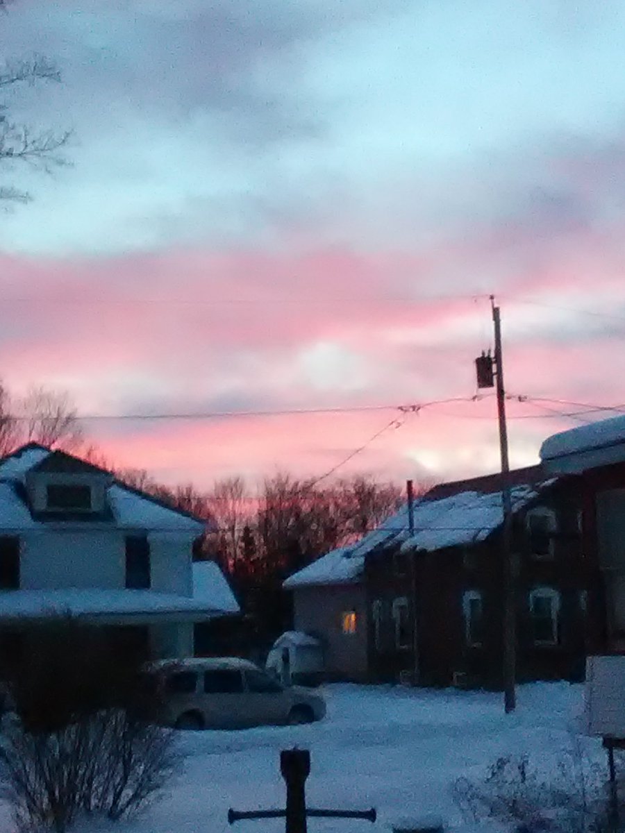 A view of the "red sky in morning" on my run today. Predicting freezing rain later on. Working on that 750 mile challenge.