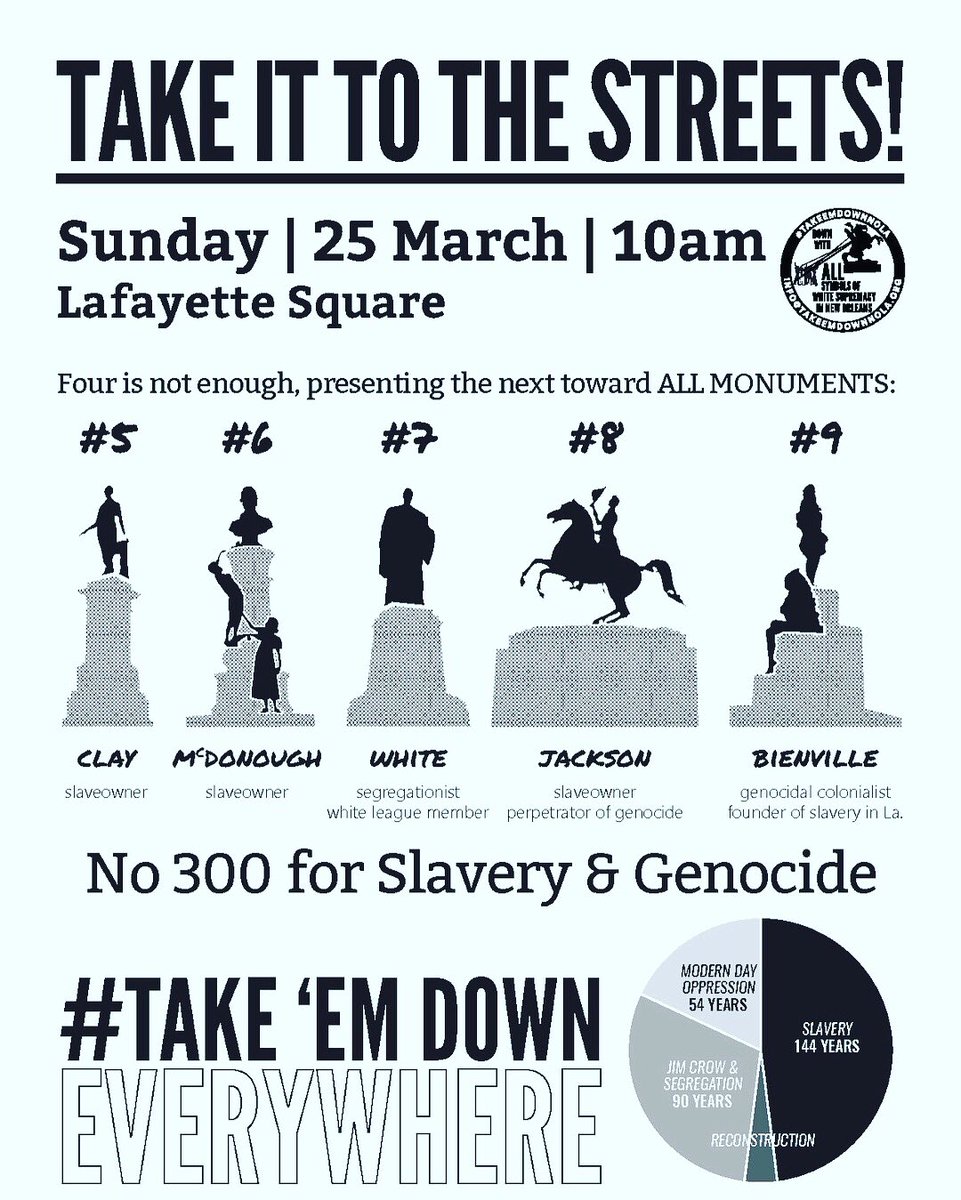 @takeemdownnola A coalition of organizers committed to the removal of ALL symbols of white supremacy in NOLA as a necessary part of the struggle for racial & economic justice
