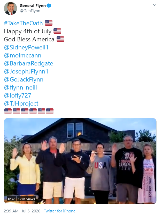 #TakeTheOath. https://www.vice.com/en/article/akgny8/michael-flynns-family-that-qanon-oath-video-is-just-our-family-motto … -