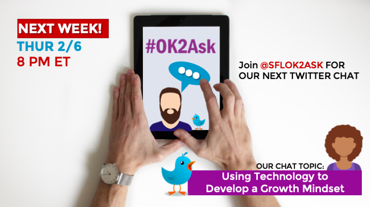 @SFLOK2Ask#edchat#twitterchat on Using Technology to Develop a Growth Mindset in one week on February 6 at 8 PM ET!