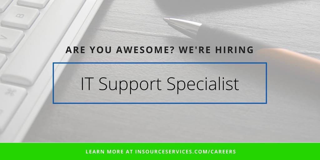 Insource is hiring for an IT Support Specialist. Click the link, share this opportunity with your network and contact us to learn more about this great opportunity! https://www.insourceservices.com/job/it-support-specialist/ …