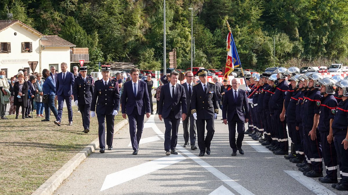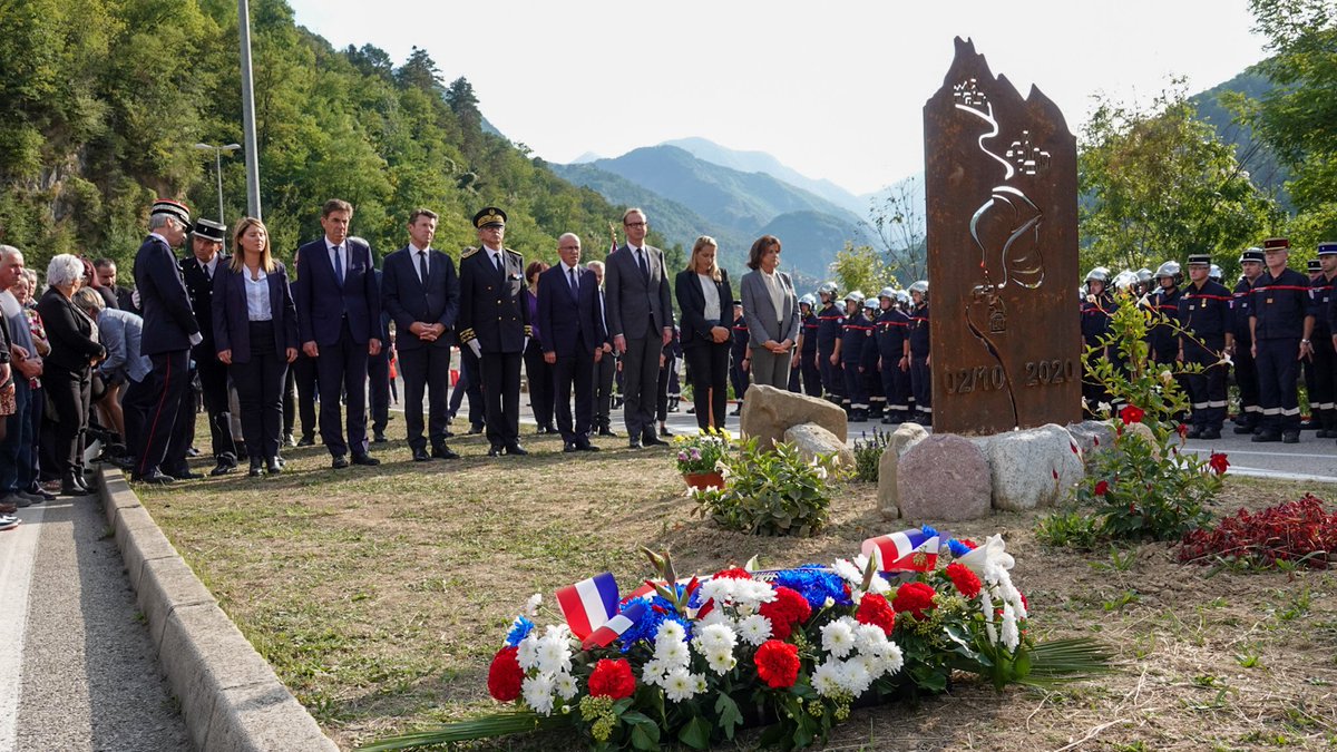 #hommage cet après-midi à la Bollène Vésubie du corps départemental à nos deux collègues#sapeurs#pompiers Bruno et Loïc, disparus lors de la#TempêteAlex, en présence des autorités et des élus.