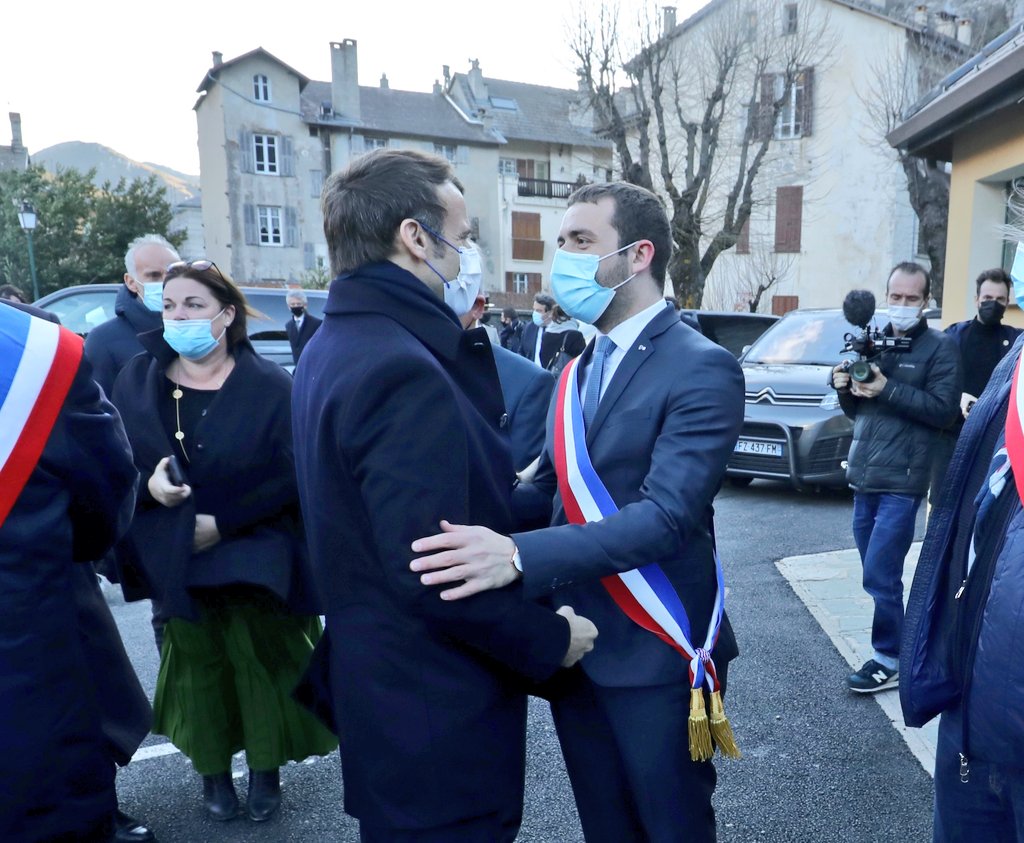 @EmmanuelMacron à Tende, venu faire le point sur la reconstruction de la#Roya suite à la#TempêteAlex. Jusqu'à présent, l'Etat a été au rendez-vous, notamment grâce au Préfet@xavierpelletier. Il faut que ça continue !pic.twitter.com/yOz3heLbSw