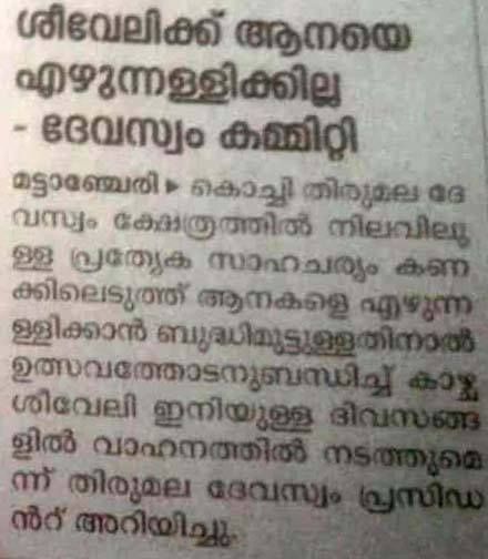 BREAKING POSITIVE NEWS!! The Mattanchery Tirumala Devaswam has BANNED ELEPHANT PARADING in their #festivals as of last Thursday, after an#elephant ran amok at the#temple on Wednesday. Temple authorities will now be using wooden chariots to replace elephants during festivals. pic.twitter.com/e50nzD5CKg