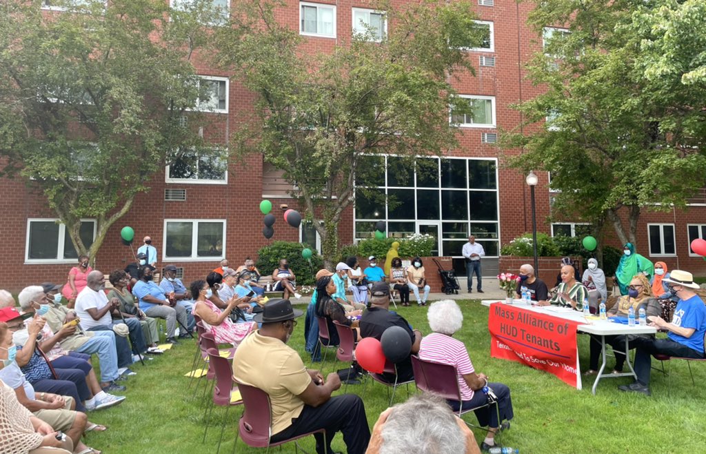 Today, on Marcus Garvey’s birthday, we’re here at Marcus Garvey Apartments in Roxbury with