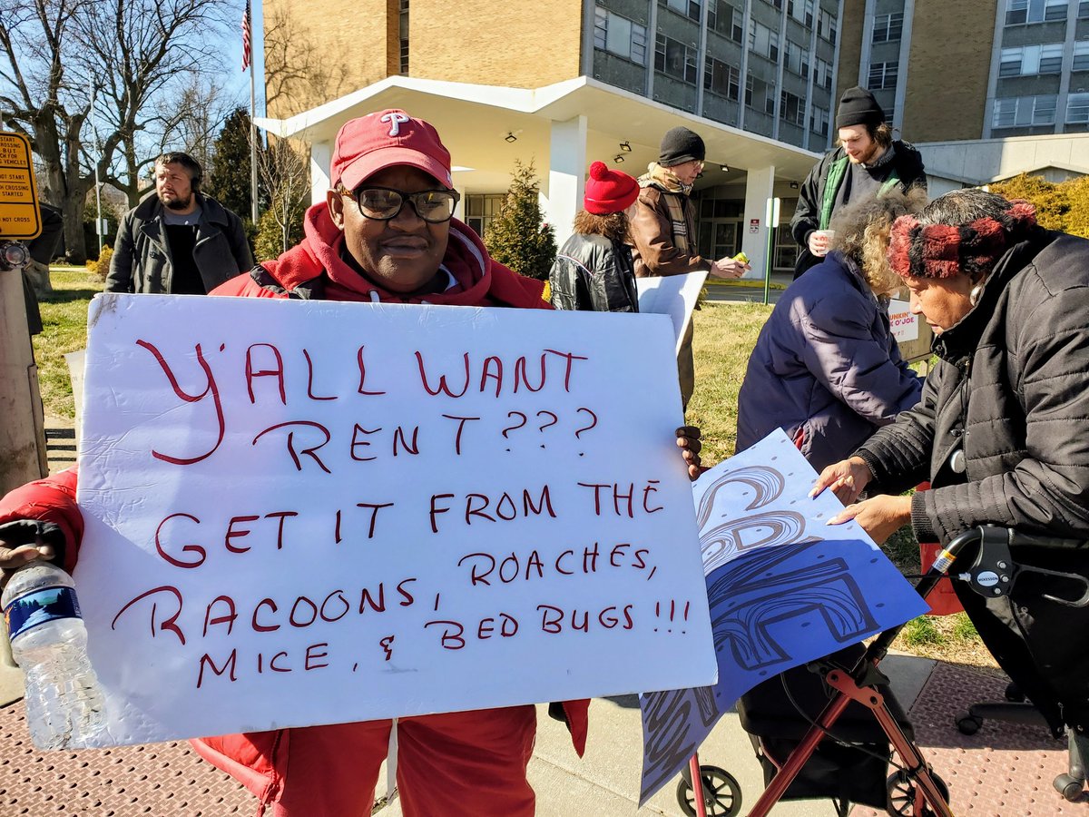 Today senior citizens of Brith Sholom apartments rallied against the building's shady management. No heat, no rent! No justice, no peace!