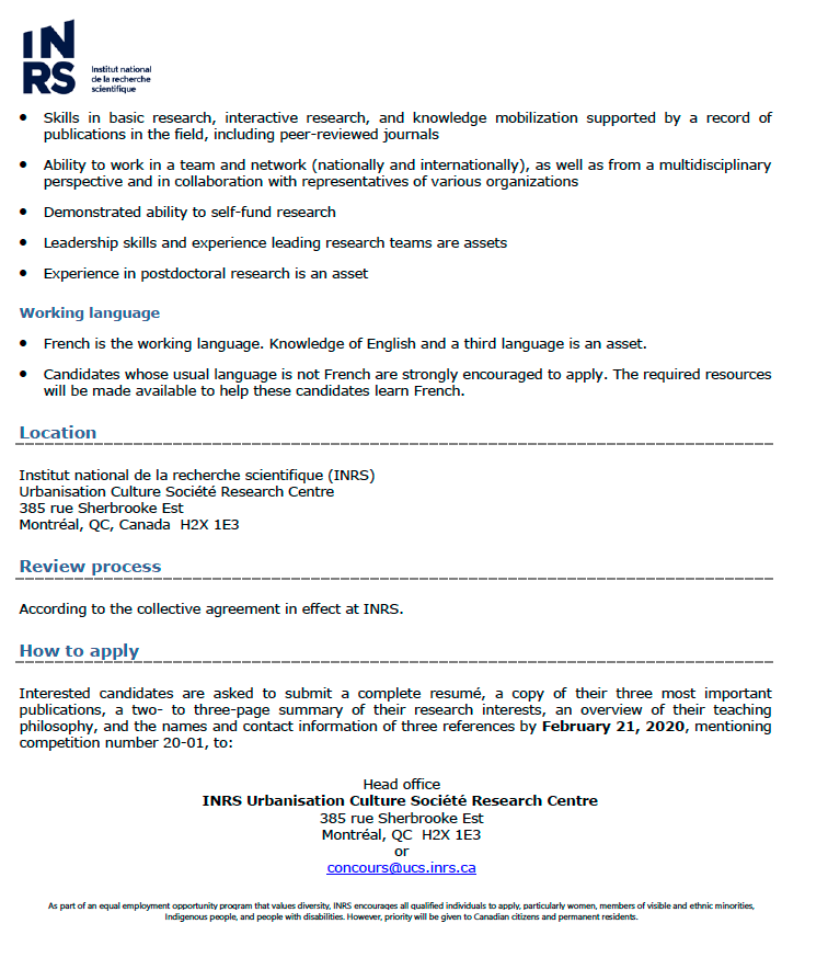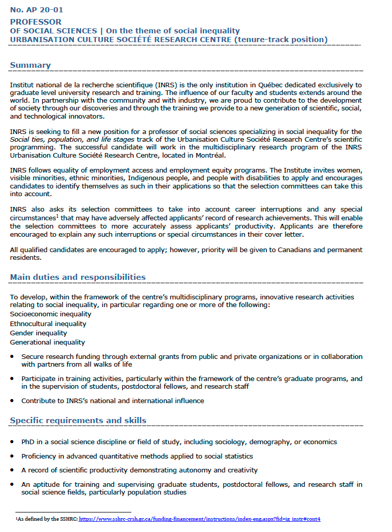 seeking to fill a new position for a professor of social sciences specializing in social inequality for the Social ties, population, and life stages track