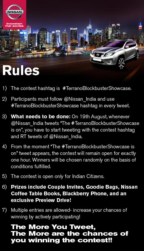 @wheelsunplugged Thanks! We are hosting a contest to celebrate#TerranoBlockbusterShowcase! Do RT and share: https://twitter.com/Nissan_India/status/369720630603563008 …