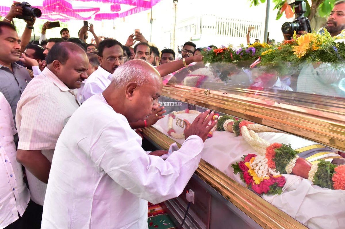 @H_D_Devegowda, to the mortal remains of the JDS party workers Sri Rangappa and Sri Hanumantarayappa who were killed in the#TerrorAttack in Sri Lanka. Consoled the grieving family members & prayed to the Almighty to give them strength pic.twitter.com/biz2Pqm0ys