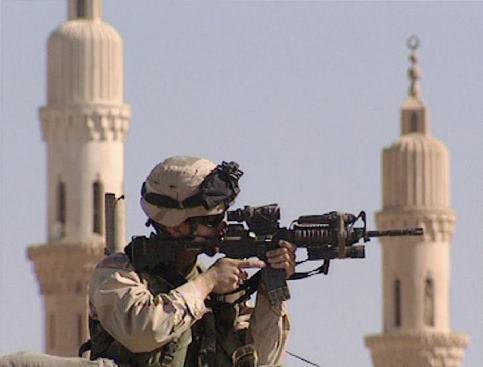 Soldado americano em Faluja, Iraque, junho 2003.