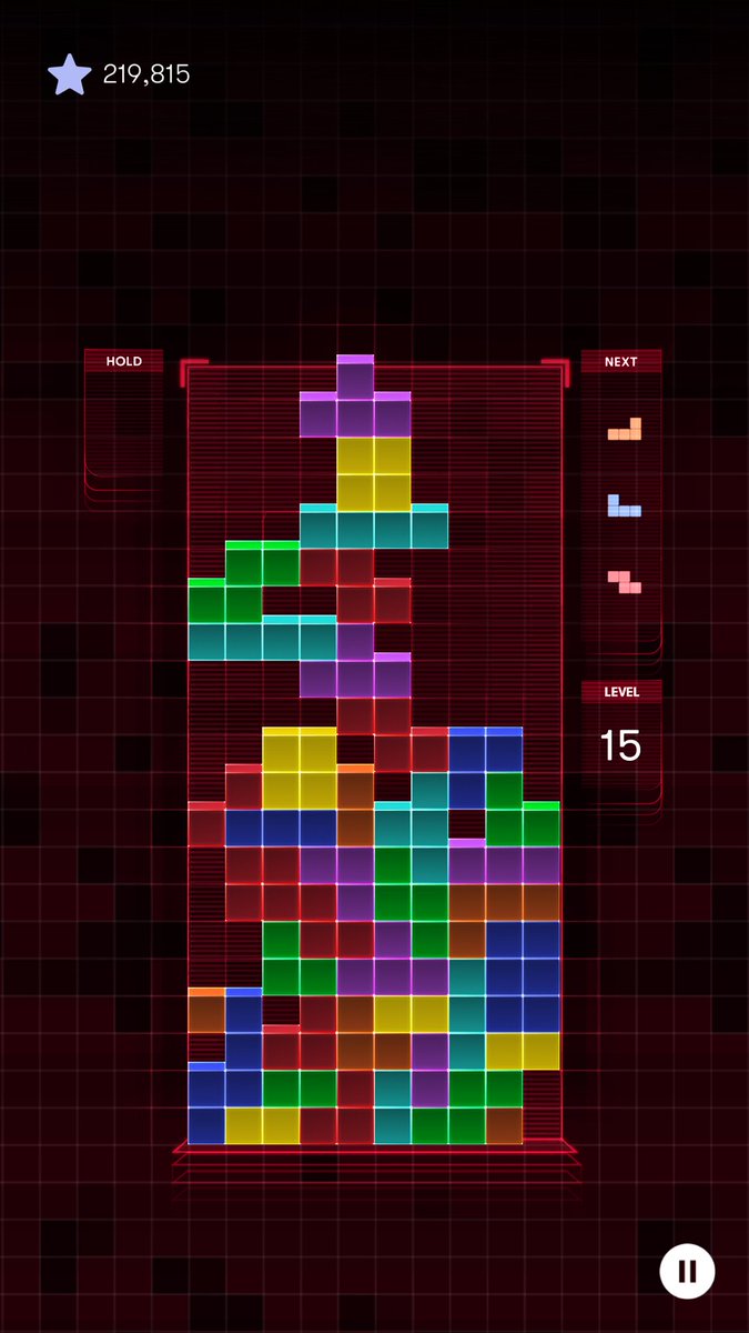 #Tetris for mobile! Lv15 219,815 Well, I'm kinda satisfied considering how fast Lv15 is... I'm not sure if this score beats my PB on NES Tetris