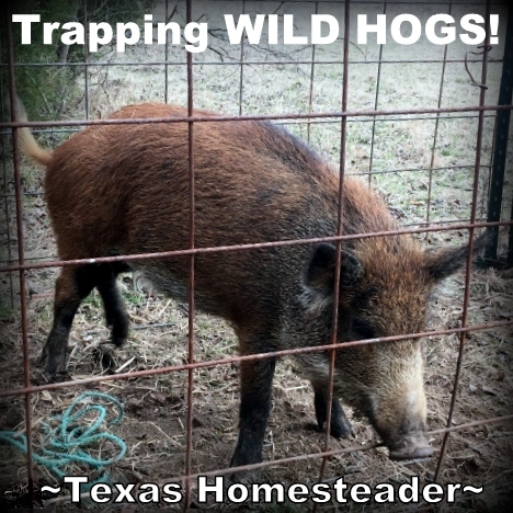 I requested that RancherMan put at least one more sow in the freezer before spring. He's happy to oblige! This wild pork is the largest part of our freezer meat each year. https://texashomesteader.com/trapping-wild-hogs/ … . .