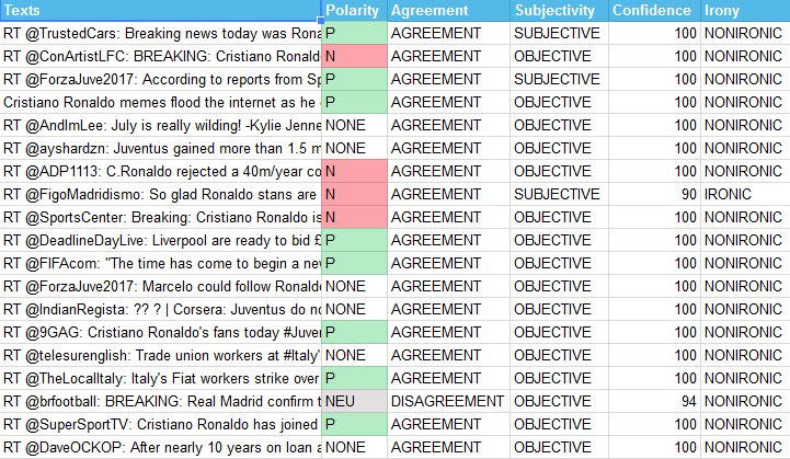 #Google Sheets very soon: you will be able to perform#TextAnalytics directly on your spreadsheet. Here's a sneak peek: are people happy with#Ronaldo