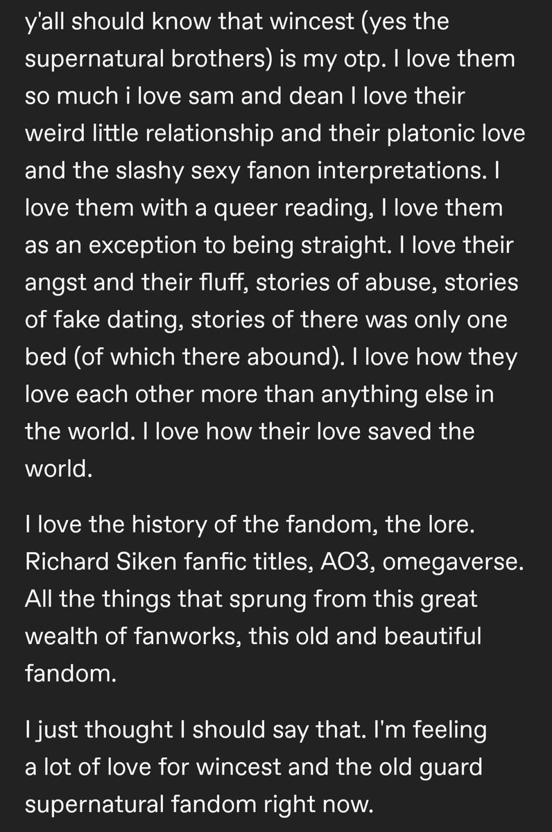 Seen on tumblr... So true. Thanks to all the amazing creators of Supernatural's canon and fanon!