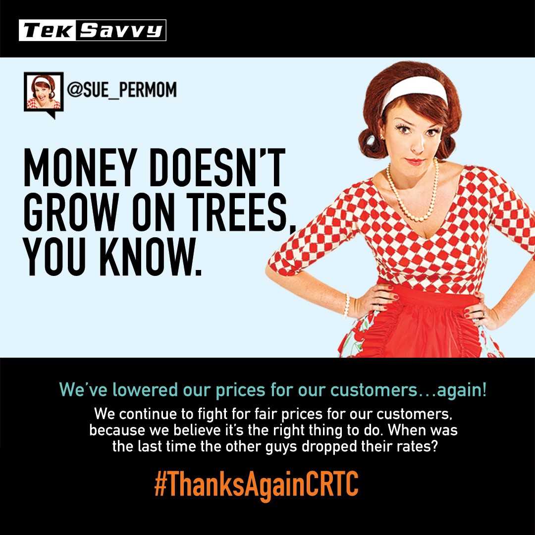 Thank you TekSavvy for lobbying to get fairer and more competitive prices for Canadian Internet access!