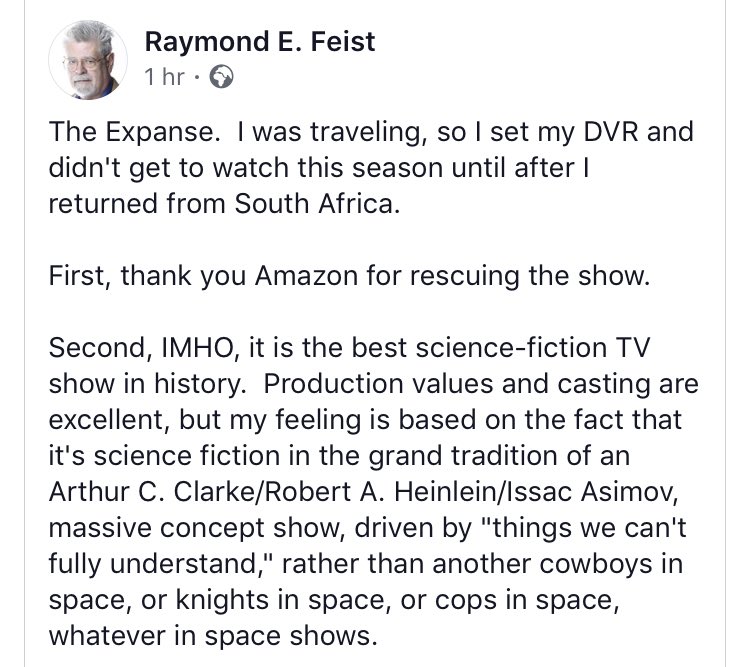 @refeist, whose works gave inspiration for my online handle Fadawah, praises my favorite sci-fi series#TheExpanse@JamesSACorey