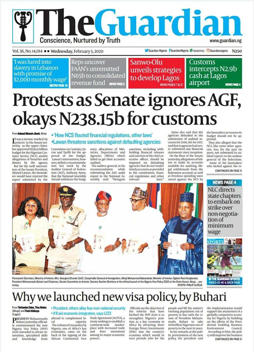 Today in The Guardian – Protests as Senate ignores AGF, okays N238.15b for customs. Get The Guardian on the newsstands for the latest in world news, sports, and in-depth analysis.