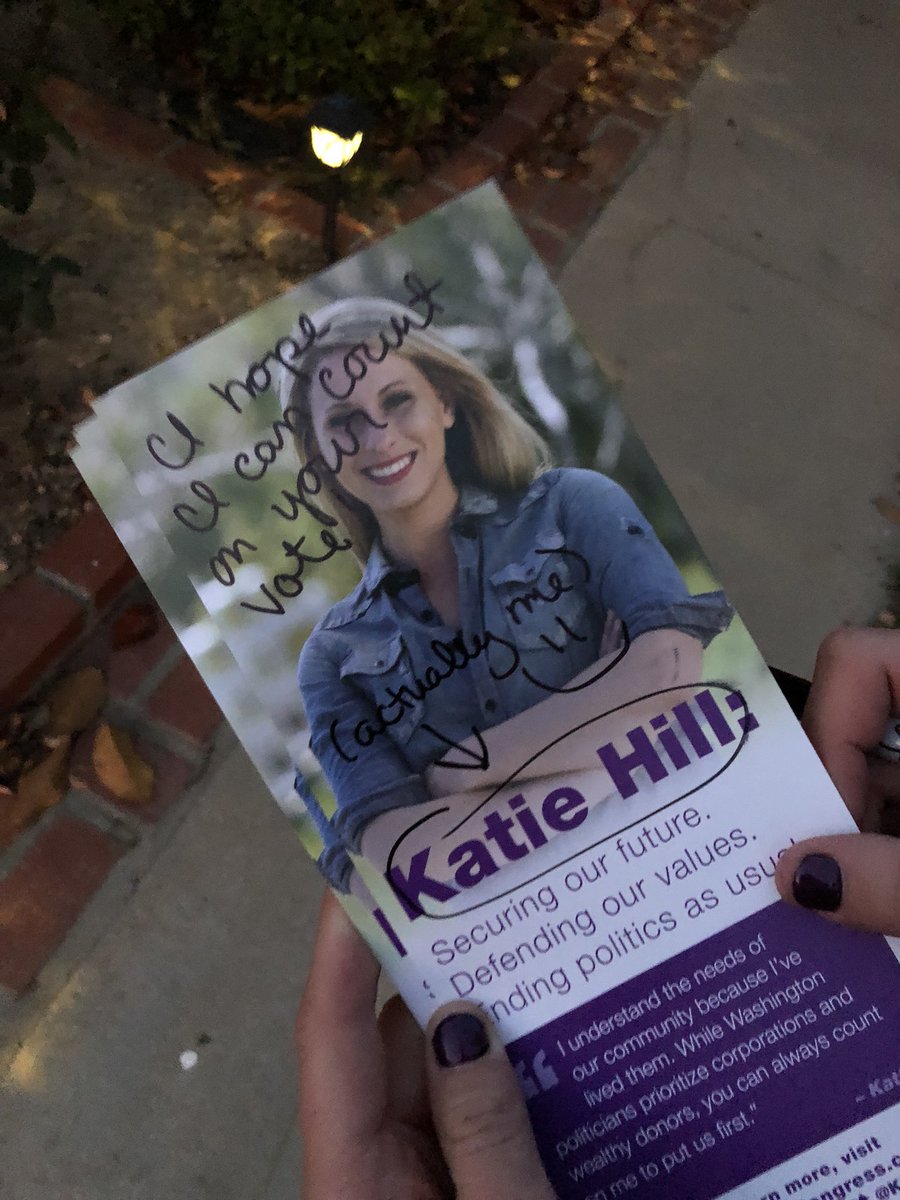 #TheLastWeekend of this election so tonight I knocked a few doors around the corner from my middle school, Arroyo Seco, in Saugus! It’s pretty incredible to be in the homestretch with such an awesome team. Let’s bring this home! https://www.katiehillforcongress.com/gotv pic.twitter.com/muk59Vtk4J