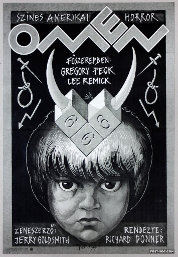 "You Have Been Warned." The stark Hungarian theatrical poster for Richard Donner's THE OMEN (1976), designed by the graphic artist, painter, illustrator, set designer, and university professor András Felvidéki (born 1946).