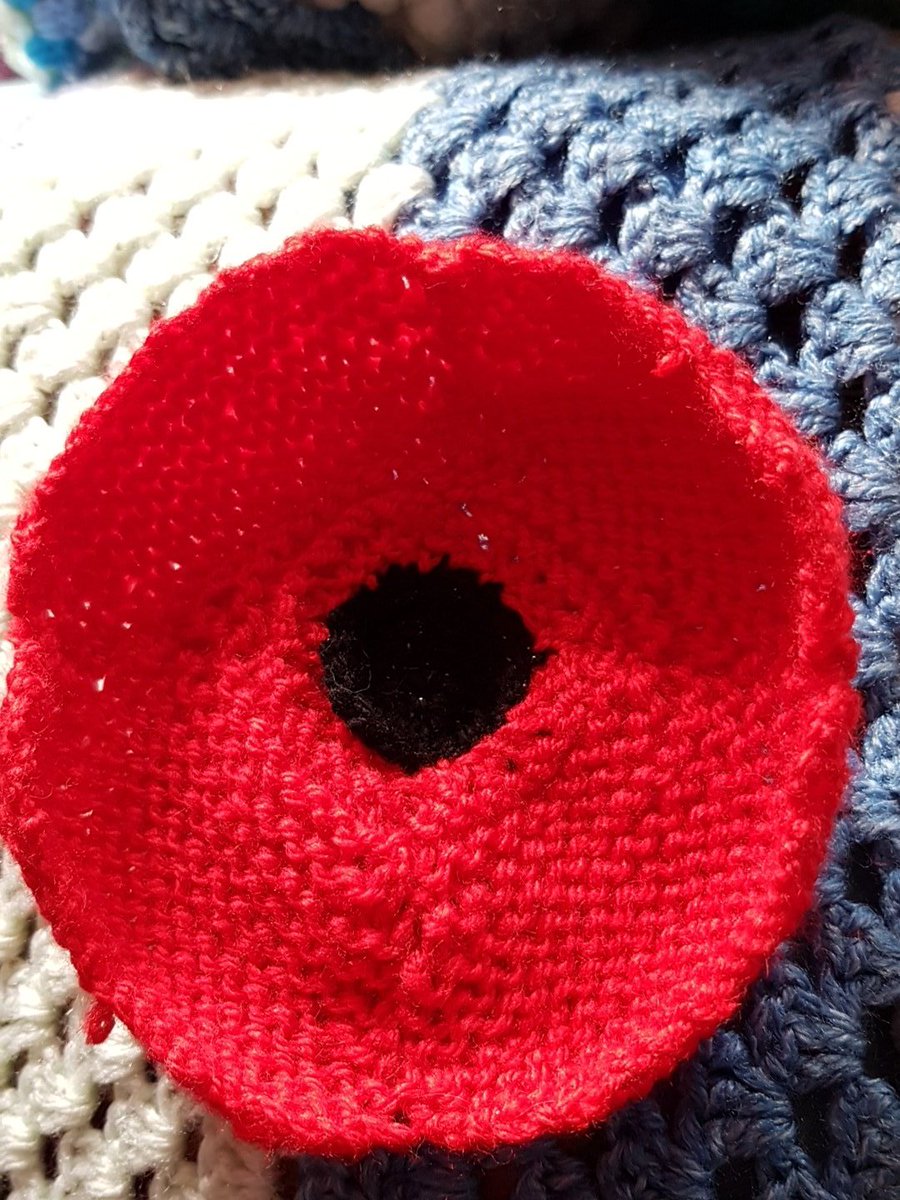 wife now in full knitting mode knitting poppies ready for remembrance Sunday