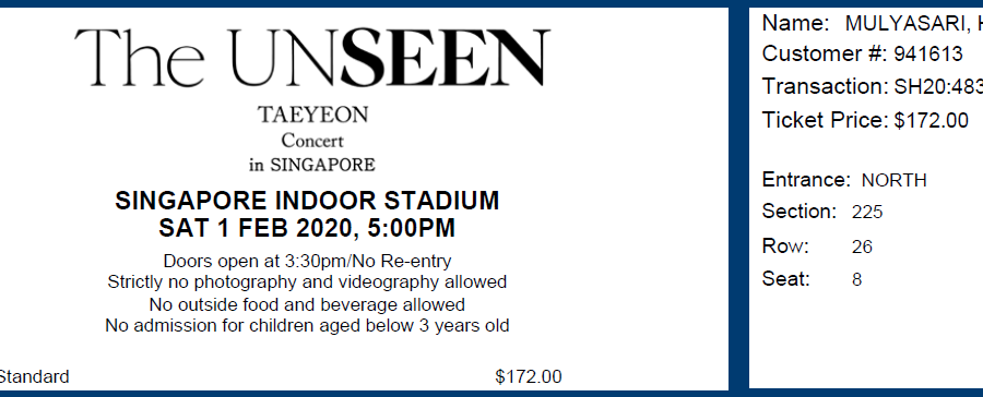 Taeyeon concert in Singapore 1 Feb 20 ticket for sale, can't attend for personal reason. Discount 20% from ori price. DM if you interest