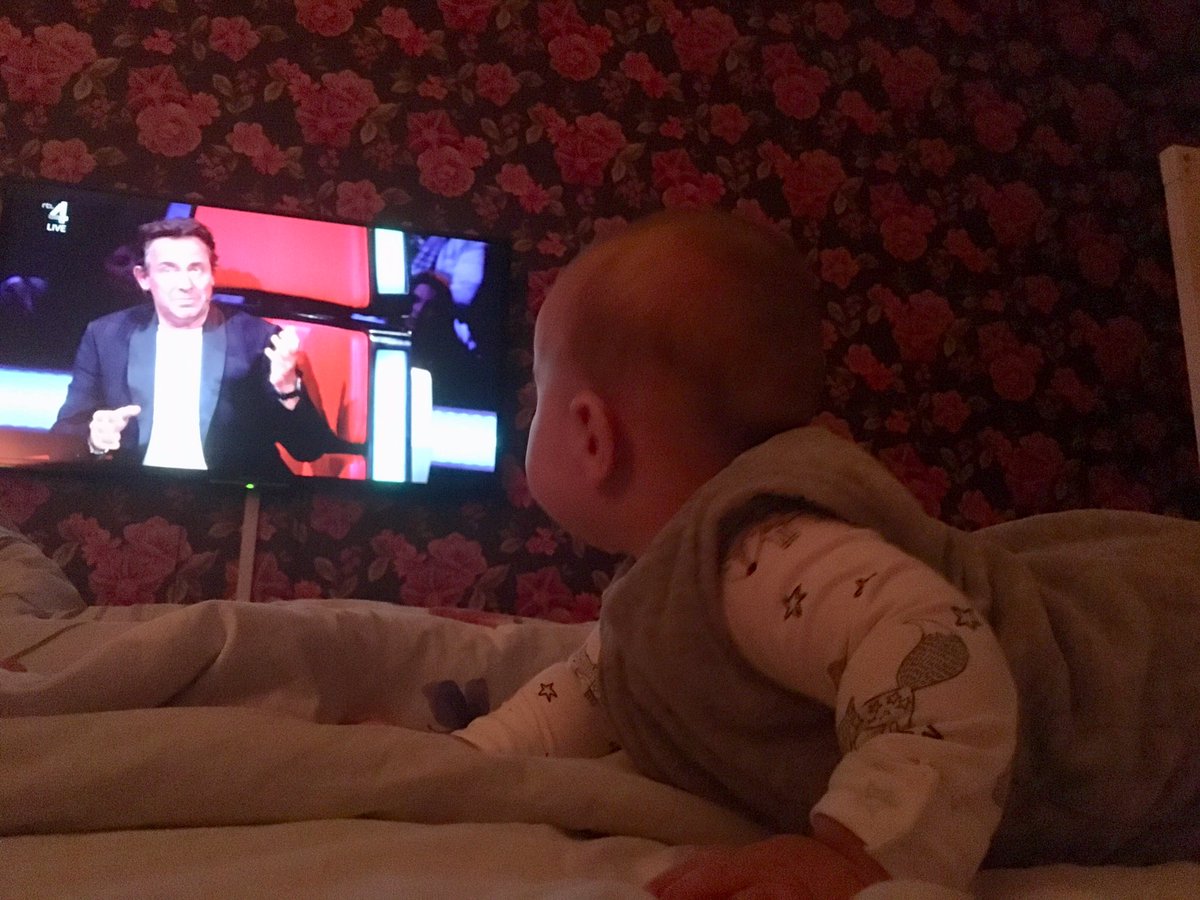 M’n dochter kijkt ook mee. Slapen is immers voor baby’s.