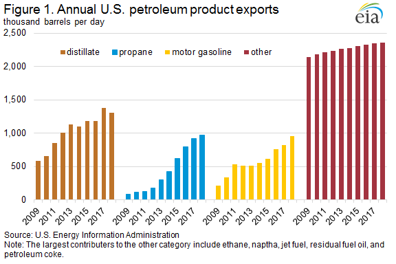 #ThisWeekInPetroleum -U.S. petroleum product#exports set record high in 2018 http://go.usa.gov/xEJpb#EnergyTradehttps://twitter.com/EIAgov/status/1110980535684382721 …